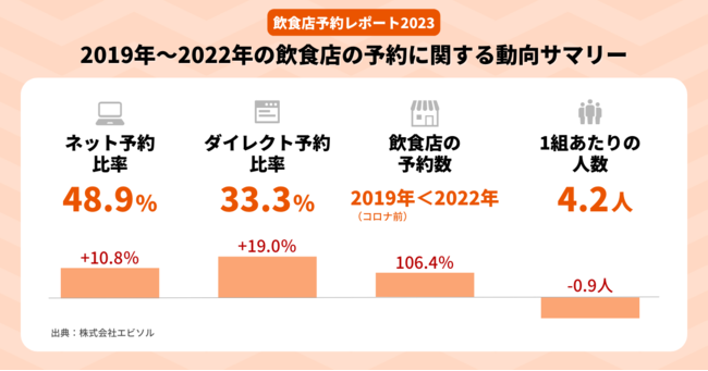 飲食店予約レポートは、「ebica」および「グルメサイトコントローラー」のデータを基に、2019年から2022年までのコロナ禍を含む3年間で変化した、飲食業界の集客や予約に関する消費者の動向をまとめたレポートです。
