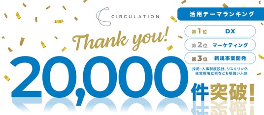 28,000名以上のプロの経験・知見を複数の企業でシェアし、経営課題を解決するプロシェアリング事業を運営する株式会社サーキュレーション(所在地:東京都渋谷区、代表取締役社長:福田 悠、以下サーキュレーション)は、累計プロジェクト数が20,000件を突破したことをお知らせします。今後も、プロシェアリングを通じて様々な経営課題を解決し、企業の変革の一助を担っていきます。