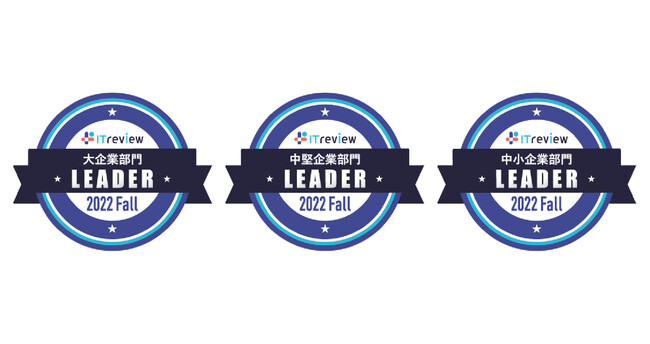 「ITreview Grid Award 2022 Fall」では、ITreviewに集まった約9.8万件のレビューをもとに、顧客満足度と認知度の双方が優れた製品を「Leader」として表彰、バッジが発行されています。ITreviewのLeaderは、既に多くの利用者から支持を得ている証であり、名誉ある称号とされております。