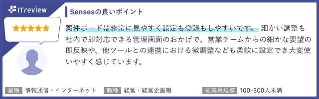 ITreviewにて、Sensesを実際に利用いただいているお客様よりたくさんのお声をいただいております。