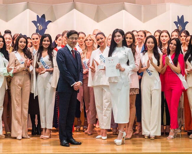ビジット・ジャパン事業は訪日外国人旅行者の増加を目的とした訪日プロモーション事業です。約70名のミスたちは、SNSなど自身の発信力を活かし、これから約2週間における日本各地での異文化交流や文化体験の様子を発信していきます。その活動がビジット・ジャパン事業に貢献するべく、観光特使に任命される運びとなりました。