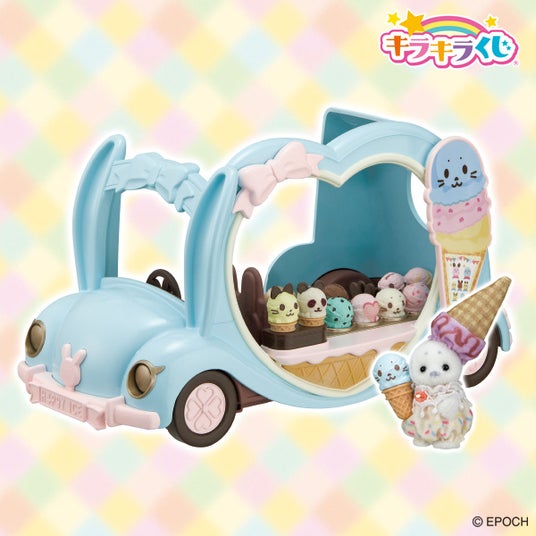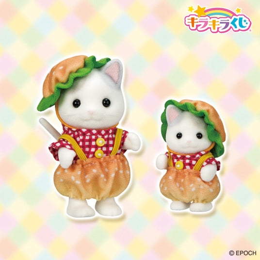 シルバニアファミリーでは、様々なモチーフのかわいいコスチュームを着ている人形が人気を集めており、当商品の衣装やのりものについても、シルバニアファミリーファンの皆様にお楽しみいただけるラインナップとなっています。また、A賞のアイスクリームワゴンとE賞、F賞のパレードカーはつなげてパレードさせることができるので、より集めて楽しい内容となっております。