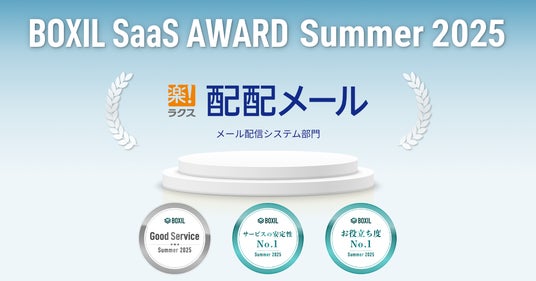 株式会社ラクス(本社:東京都渋谷区、代表取締役:中村 崇則)が提供するメールマーケティングサービス「配配メール」は、スマートキャンプ株式会社(以下「スマートキャンプ」)が主催する「BOXIL SaaS AWARD Summer 2025」のメール配信システム部門で「Good Service」「サービスの安定性No.1」「お役立ち度No.1」に選出されました。