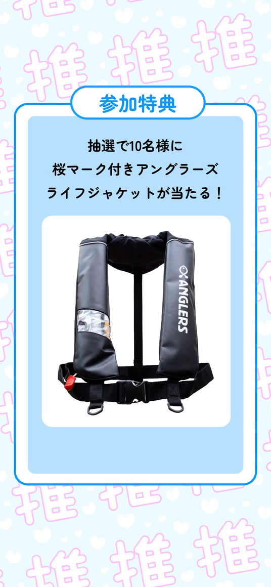 応募された方の中から、抽選で10名様に「アングラーズロゴ&桜マーク付きライフジャケット」 が当たるチャンス!