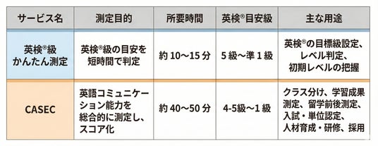 「英検(R)級かんたん測定」と「CASEC」の役割の違い