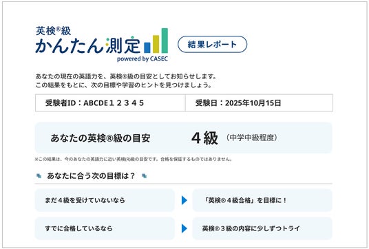 株式会社EduLab(エデュラボ 本社:東京都港区、代表取締役社長兼CEO:廣實 学)のグループ会社である株式会社教育測定研究所(代表取締役社長:西田 紀子)は、英検(R)級の目安を短時間で測定できる「英検(R)級かんたん測定 powered by CASEC」を開発、提供を開始しました。