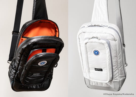 藤倉航装のパラシュート素材と、廃棄されたタイヤチューブ(ブラックカラーのみ)を使用したワンショルダーバッグが誕生しました。本製品は、人気漫画『宇宙兄弟』で南波六太が着用する月面宇宙服をモチーフにデザインされ、洗練されたディテールと高い機能性を兼ね備えています。