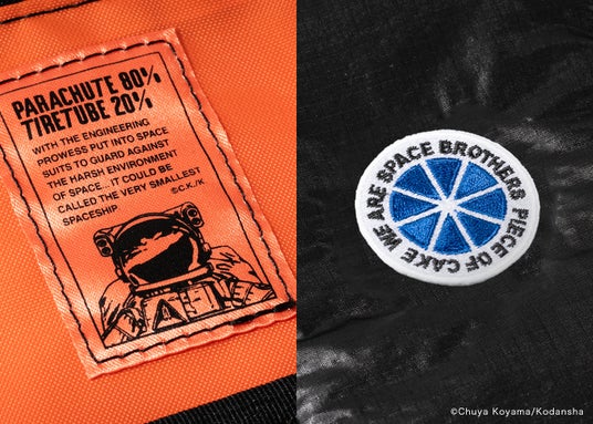 宇宙からの帰還を守る、藤倉航装※が作る本物のパラシュート生地を採用。『宇宙兄弟』から着想を得た高機能・高技術ブランドの「MOONWORKシリーズ」。