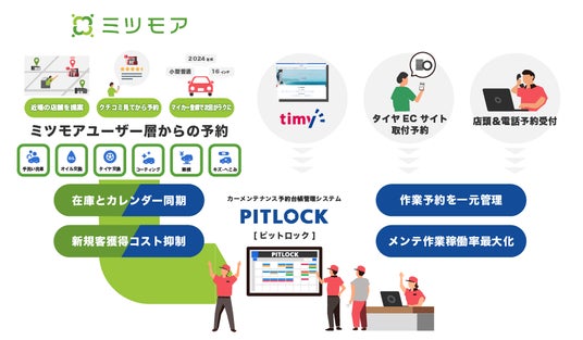 自動車メンテナンス分野では、店舗情報が散在して比較がしにくいことに加え、オンライン予約比率が1割台にとどまるという業界課題があります。(国土交通省「自動車整備事業実態調査 2024」)ミツモアはこれまで引越しやハウスクリーニングなど生活サービスを提供してきましたが、カーケア領域へのユーザーニーズには十分応えきれていませんでした。一方で timy はサービスステーション中心に“クルマ好き層”の予約を獲得する一方、日常生活者層へのリーチ拡大が課題となっていました。