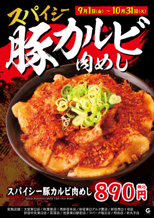 株式会社ガーデン(本社:東京都新宿区 代表取締役社長:川島賢 以下「当社」)が運営する「情熱のすためしどんどん」は、2023年9月1日(金)から2023年10月31日(火)の期間限定で、『スパイシー豚カルビ肉めし』を情熱のすためしどんどん全店舗※で販売いたします。