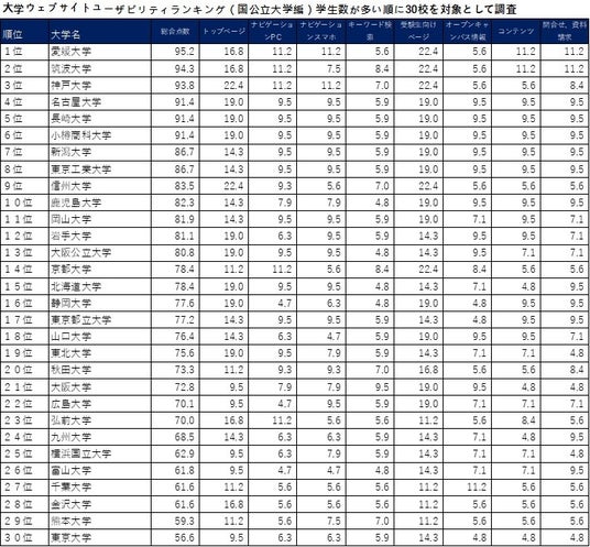 ECマーケティング株式会社(所在地:東京都港区、代表取締役社長:中山高志、以下「弊社」)は、民間企業・官公庁・教育機関ウェブサイトのユーザビリティ調査を800サイト以上実施している知見に基づき全国30の国公立大学を対象にユーザビリティ調査を実施し、「大学サイトユーザビリティランキング(国公立大学編)」を作成しました。