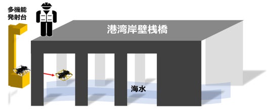 当社が開発した狭小空間点検ドローン「IBIS2」及び、本取り組みを通じて開発予定の多機能発射台を活用した港湾桟橋環境に適した点検を実施します。