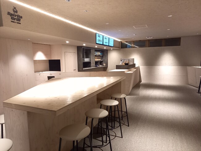 建物内にはチケットセンターやスキースクール、本格ハンバーガーやお酒が楽しめるSpirits Grillが入っております。ゲレンデ景色を眺めることのできるカウンター席、ラグジュアリーなソファ席、フリーWi-Fi、キッズスペースも完備しております。信州産鹿肉を使用した「信州ジビエバーガー」を販売し、ここでしか味わうことができないオリジナリティ溢れるメニューをご提供しております。