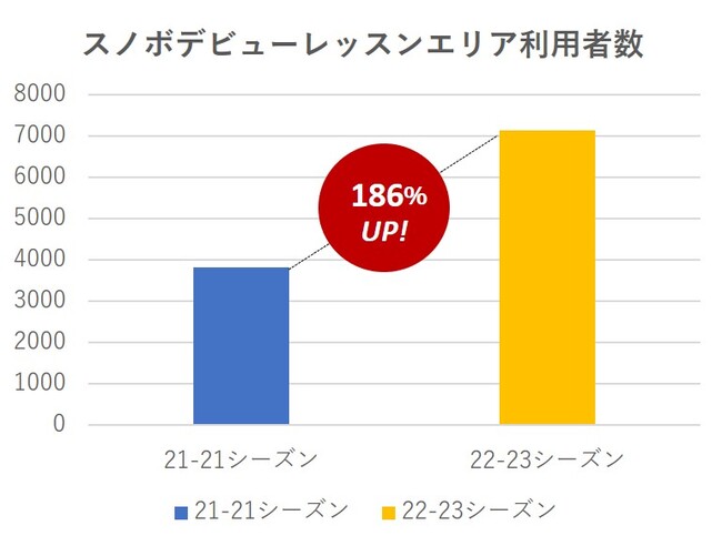 株式会社北志賀竜王(所在地:長野県下高井郡山ノ内町、代表取締役社長:西口昌司)が運営する竜王スキーパークでは、「日本一スノボデビューしやすいスキー場」として、昨年2021‐2022年シーズンより宣言を行い、スノーボードを始める方の第一歩をサポートし、雪山へのエントリーを推進しております。そして昨年は約4,000人が竜王スキーパークからスノボデビューし、今年2022‐2023年シーズンは約3,000人増加の7,140人がスノボデビューを果たしました。