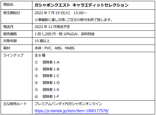7 月 19 日(火)13:00 よりプレミアムバンダイ内「ガシャポンオンライン」にて発売