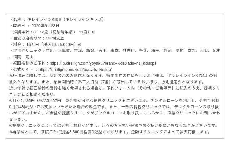 推奨年齢3~12歳(初診時年齢3~11歳)*の小児用矯正歯科治療プログラム『キレイラインKIDS』(キレイラインキッズ)はこの度、キレイラインKIDSで治療を頑張るお子さま並びに親御様を応援する取り組みとして、2021年10月29日(金)~11月7日(日)の10日間にかけて、Twitter&Instagramキャンペーンを初開催いたします。