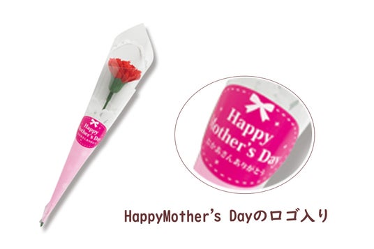 ロゴ入りシールがワンポイントで可愛いカーネーションが母の日をさらに華やかに彩ります。