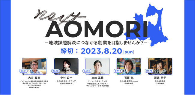 株式会社MAKOTO WILL(本社:宮城県仙台市、代表取締役:菅野永)は、青森県から事業委託を受け、県内の地域課題をヒントにしたビジネス創出プログラム「NEXT AOMORI」の募集を開始しました。県内外で地域課題の解決にコミットしている先駆者の伴走を受けながら、過疎地域における移動問題・伝統工芸の後継者不足・空き家の増加等、地域課題を解決しうるビジネスアイデアの構築を目指します。