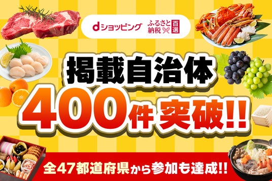 株式会社オールアバウトライフマーケティング(本社:東京都渋谷区、代表取締役社長:土門裕之)は、株式会社NTTドコモ(本社:東京都千代田区、代表取締役社長:前田 義晃 、以下「ドコモ」)と共同運営する総合通販サイト「dショッピング(R)」( https://dshopping.docomo.ne.jp/ )内のふるさと納税ポータルサイト「dショッピング ふるさと納税百選」( https://dshopping-furusato.docomo.ne.jp/ )で、取り扱い自治体数が400自治体を突破いたしました。