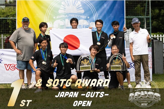 競技者自身がルールを運用する「セルフジャッジ制」を採用しているアルティメット及びガッツでは、スピリット・オブ・ザ・ゲーム(SOTG)という「各選手のフェアプレイに対する責任感」を前提として試合を進行します。この考え方に則ったプレイを奨励する目的で、試合の順位表彰に加えて、SOTG賞を設けています。この賞は、大会期間中に対戦した全ての相手チームから与えられた評価スコアの平均点を参考にして、最優秀チームを表彰するものです。