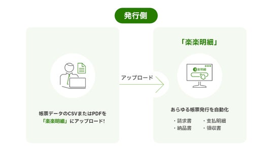「楽楽明細」は、請求書、納品書、支払明細などの帳票をWEB上で発行するクラウド型のシステムです。帳票データを「楽楽明細」にアップロードするだけで、取引先に応じて「WEB」「メール添付」「郵送」「FAX」のいずれかの方法で自動発行が可能で、請求書発行において手間のかかる「印刷・封入・発送」の作業をゼロにできます。