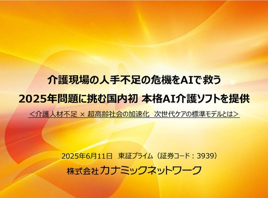 株式会社カナミックネットワーク(本社:東京都渋谷区、代表取締役社長:山本拓真)は、2025年6月11日に厚生労働省記者会見室にて記者発表を行い、国内初※となる「本格AI搭載クラウド介護ソフト(介護AISaaS)」の提供開始を発表いたしました。