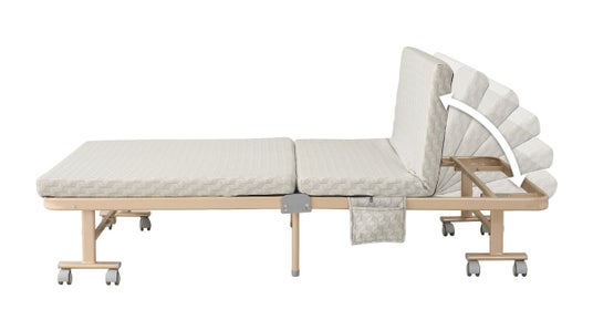 当社従来モデルと比較し、約30%の軽量化に成功。軽量なので女性や高齢者の方でも扱いやすく、折りたたみ動作はもちろん、宅内での段差や階上への移動の負担を軽減した折りたたみベッドです。