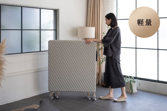 また、折りたたみの際も強力なバネがしっかりサポートするので、床面を持ちあげるだけで簡単に収納可能。十分な寝室スペースが取れない狭小空間でも、清潔で良質な睡眠環境を保つことができます。