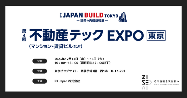 株式会社タスキ(本社:東京都港区、代表取締役社長:柏村 雄、証券コード:2987)の子会社である株式会社ZISEDAI(本社:東京都港区、代表取締役社長:柏村 雄)が、2023年12月13日~15日に開催される「JAPAN BUILD TOKYO」内「第4回不動産テックEXPO(東京)」に出展することをお知らせいたします。