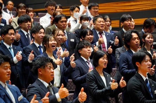 奈良・京都南部を中心に注文住宅「楓工務店」や不動産事業「トチナラ」など11事業を展開するアイニコグループ株式会社(本社:奈良県奈良市、代表取締役:田尻忠義、以下「当社」)は、2026年4月1日(水)、奈良コンベンションセンターにて2026年度(当社第20期)入社式を開催いたしました。今年度は17名の新卒社員が「笑顔を創造し続ける」という理念のもと、新たな一歩を踏み出しました。