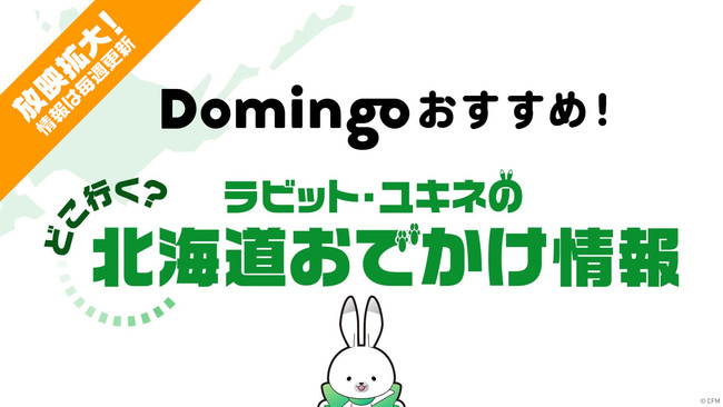 「Domingoおすすめ!どこ行く?ラビット・ユキネの北海道おでかけ情報」は、クリプトンが運営する無料の北海道情報メディア『Domingo』の取り組みとして制作したものです。『Domingo』の企画部部長を務めるキャラクター『ラビット・ユキネ』のアニメーションを用いて、全179市町村の情報を取り扱う『Domingo』の中から、特におすすめの道内イベント情報をピックアップした内容でお届けいたします。