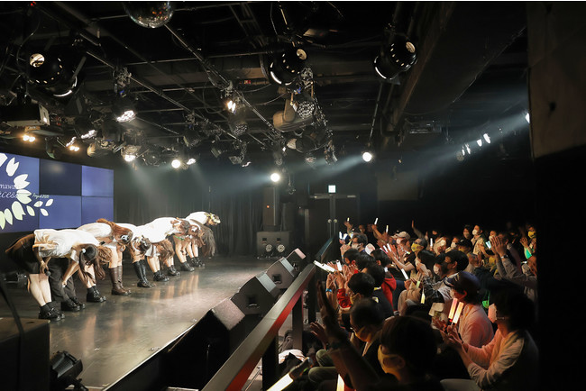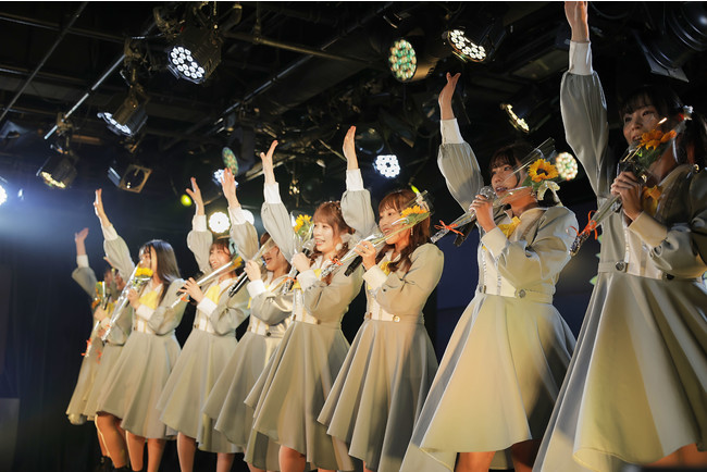 さらにこの日は待望の新曲2曲も初披露!「PM12:00のプリンセス」はグループ初の自己紹介ソングで、一人ひとりの魅力にスポットを当てたフレーズを聴けばメンバー愛がさらに深まる楽曲だ。もう一方の「これから」は、頑張るすべての人に寄り添う前向きなエールソング。客席の熱気を一気に高めた新曲は、「ミニアルバム全国リリース決定」という嬉しいニュースでさらに会場を沸かせた。さらに東名阪ツアーも発表され、これにはメンバーも笑顔で声をあげた。センターを務める入内嶋は「全国のみなさんにお届けできることが嬉しいです。東名阪、会いに行きますので待っていてください」と喜びを噛みしめた。さらにリーダーの知花は「今回のワンマンは感謝と嬉しさでいっぱいでした。さらに輪をひろげていきます!」と笑顔いっぱいにコメント。