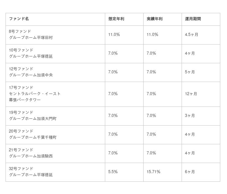 過去に実施した配当支払においては、想定の年利を下回ったものや支払遅延が発生したものはありません。