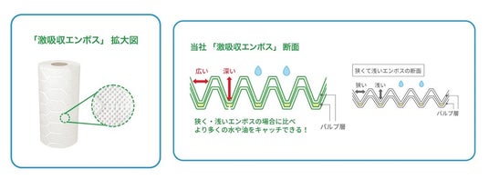 2. 激吸収エンボスにより、水や油をしっかりキャッチ!