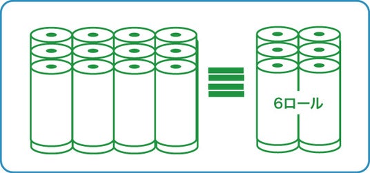 6ロールで、12ロール分の長さ(※3)。長巻でコンパクトだから、交換回数が少なく、収納に便利。