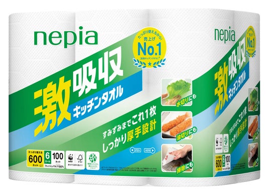 王子ネピア株式会社(本社:東京都中央区、代表取締役社長:森平高行)は、長巻キッチンタオルで売上No.1※の「ネピア 激吸収キッチンタオル」ブランドからたっぷり使える大容量6ロールをラインナップに追加し、2025年3月下旬より全国で順次発売いたします。