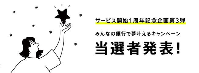 株式会社みんなの銀行(取締役頭取 永吉 健一、以下「みんなの銀行」)がサービス提供開始1周年を記念して実施した「みんなの銀行で夢叶えるキャンペーン」にて厳正なる選考の結果、下記3名の方が当選されました。