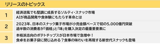 情報の出典元として【ミンテルジャパンレポート『ソルティ・スナックトレンド - 日本 - 2024年』より】の明記をお願いいたします。