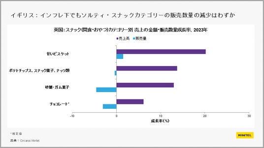 イギリスでは、インフレにより家計が圧迫されている時期にスナック類の価格が急上昇したことで、2023年のスナックカテゴリーの販売数量が打撃を受けました。