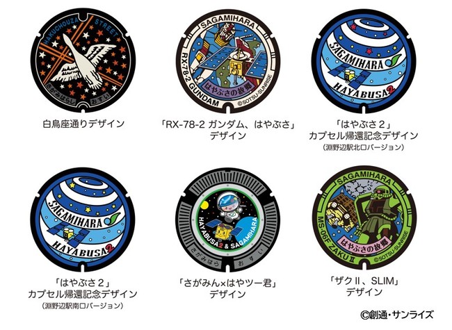 相模原市では、市内に「はやぶさ」や「はやぶさ2」を生んだJAXA相模原キャンパスを擁することから宇宙をまちづくりのテーマの1つに掲げており、特に淵野辺地区周辺では宇宙モチーフのマンホール蓋を多数設置しています。
