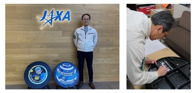 「はやぶさ2」カプセル帰還記念デザインマンホール蓋の裏には、「はやぶさ2」津田雄一プロジェクトマネージャがサインを書いてくださいました。(裏面のためご覧いただくことはできません)
