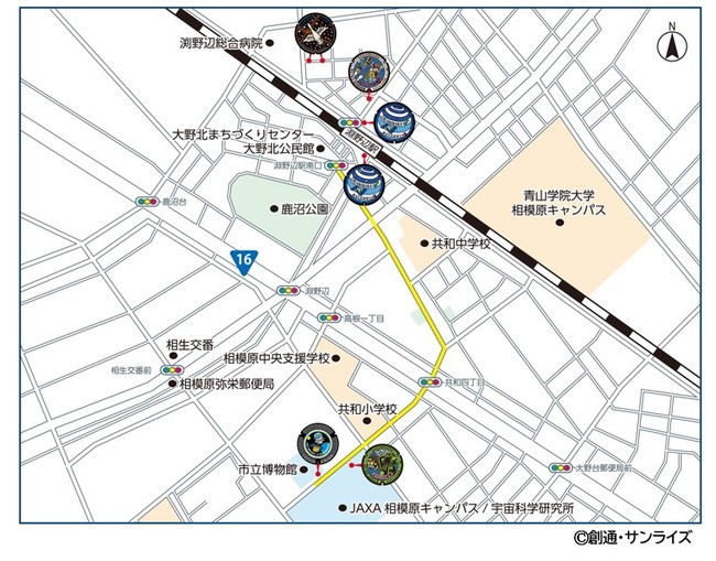 場所:「RX-78-2 ガンダム、はやぶさ」JR横浜線 淵野辺駅北口(淵野辺3丁目19付近交差点)