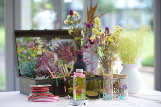 「サステナチャレンジショップ」の展開に合わせて、期間中に店頭でハーバリウムづくり体験のワークショップを実施します。色とりどりのドライフラワーやビーズをガラス瓶に詰めてリボンやマスキングテープで彩る、世界にひとつだけのオリジナルハーバリウムがつくれます。ドライフラワーは、生産者が市場に出荷できない規格外の花や流通過程の都合でフラワーショップの店頭に並べることのできなかった花(通称:リンクフラワー)を含む生花をドライ加工したものをご用意します。