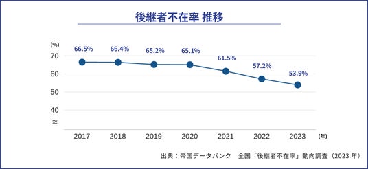 しかし近年、後継者不在率は改善が進んでおり、2023年には後継者不在率が過去最低の53.9%となりました(※2)。