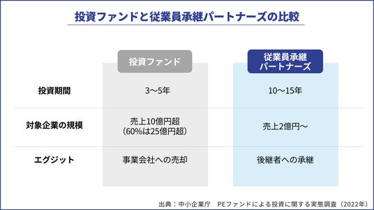 従業員承継パートナーズは、一般的な中小規模の投資ファンドとは異なります。