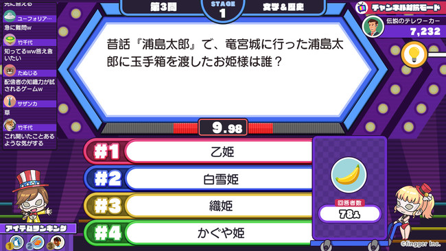 配信者と視聴者には「文学&歴史」「芸能&音楽」「アニメ&ゲーム」「グルメ&趣味」などの8ジャンルから1つを選択し、全5ステージをプレイしていただきます。