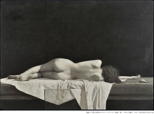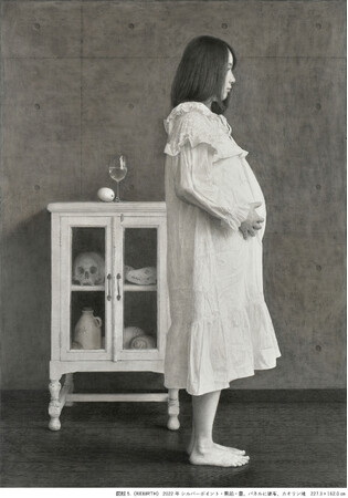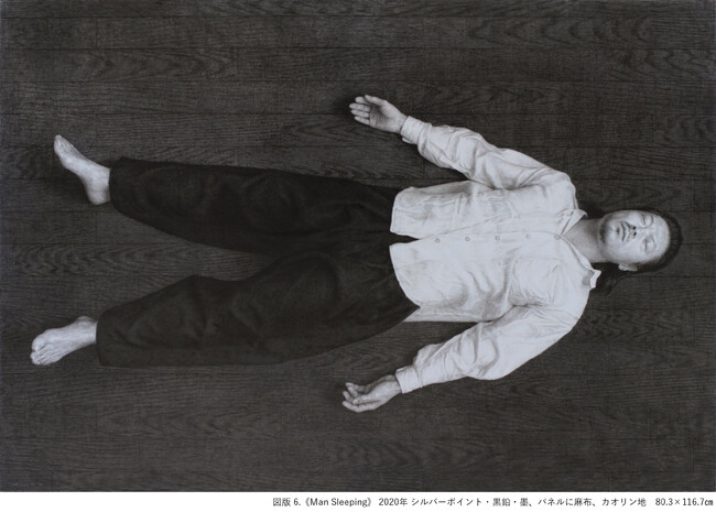 描画にはヨーロッパで鉛筆の登場以前に用いられていた金属尖筆、アジアの伝統的画材である墨、下地には北西ヨーロッパ産の白亜や中国原産のカオリン、さらにアルキド樹脂といった現代の材料も含め、画材の新たな使い方がみられます。画材や技術といった側面はあくまで手段でしかないとしながらも、それらを試行錯誤する楽しさは絵を描く動機の一つとなっています。