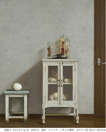 「絵を描くことは自分を見つめることでしかない」という、画家本人の思考を深めた作品でありながら、観る者それぞれが抱えてきた問題意識とつながり得る絵画群です。それは生死といった身近に潜む不思議に端を発した作品であることに由来しているのかもしれません。画面に満ちる光と底知れぬ黒、繰り返し描かれている事物を前に、どのような問いが想起されるでしょうか。私たちが、立ち止まり深く考えるような絵に出会うことになるでしょう。