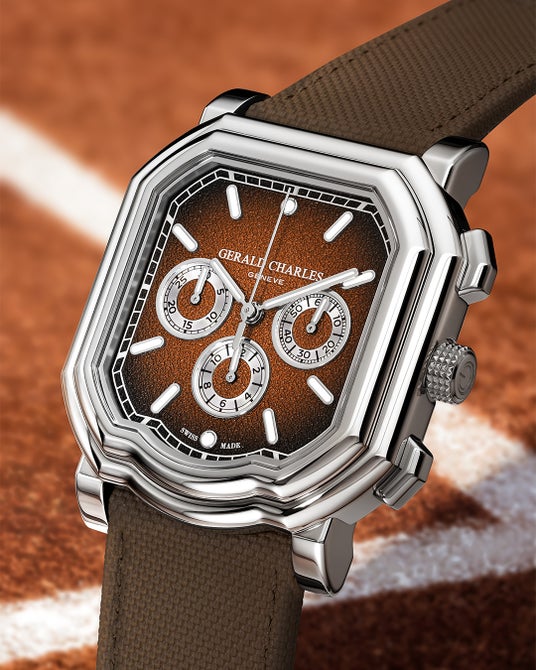 ジェラルドチャールズは、マエストロ 3.0 クロノグラフ クレイによって、再びスポーティなインスピレーション、卓越した技術性能、人間工学に基づく快適な装着感、そして際立つデザインを融合させ、メゾンとテニスの世界との永続的な結びつきを改めて示しています。