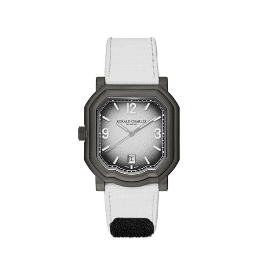 このタイムピースのスポーティさをさらに際立たせるのが、イージーリリースシステムを備えたベルクロストラップです。着用者はストラップを自分で簡単に交換でき、手軽にスタイルを変えることが可能です。ジェラルドチャールズでは、ラバーやベルクロ製の交換用ストラップも豊富に取り揃えており、多彩なカラーであらゆるシーンや個人のスタイルに対応しています。
